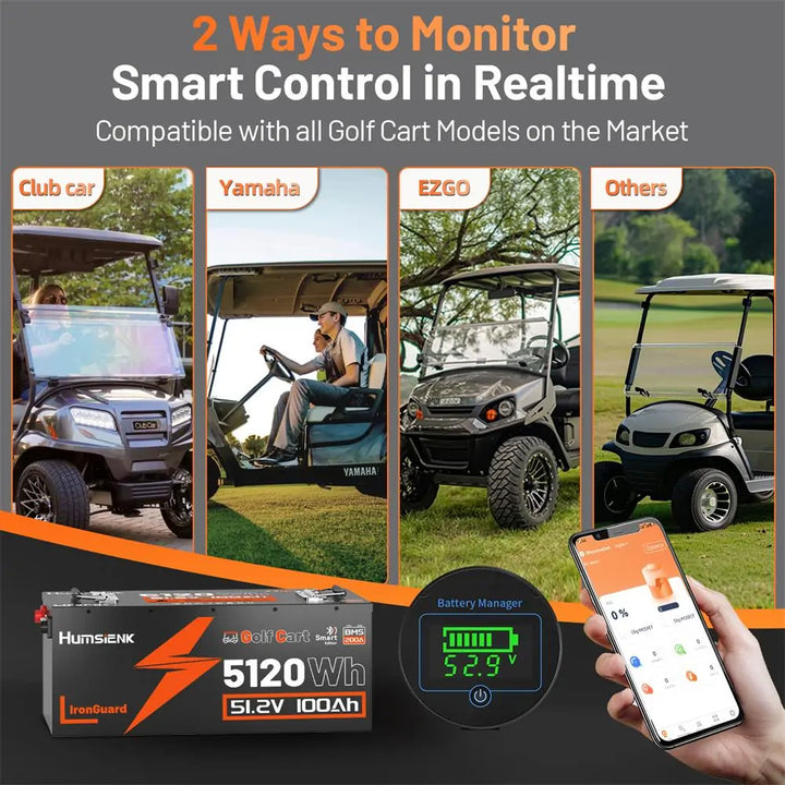 [⚡Automatic $50 OFF] 48V 100Ah Golf Cart Bluetooth LiFePO4 Battery with 200A BMS V2