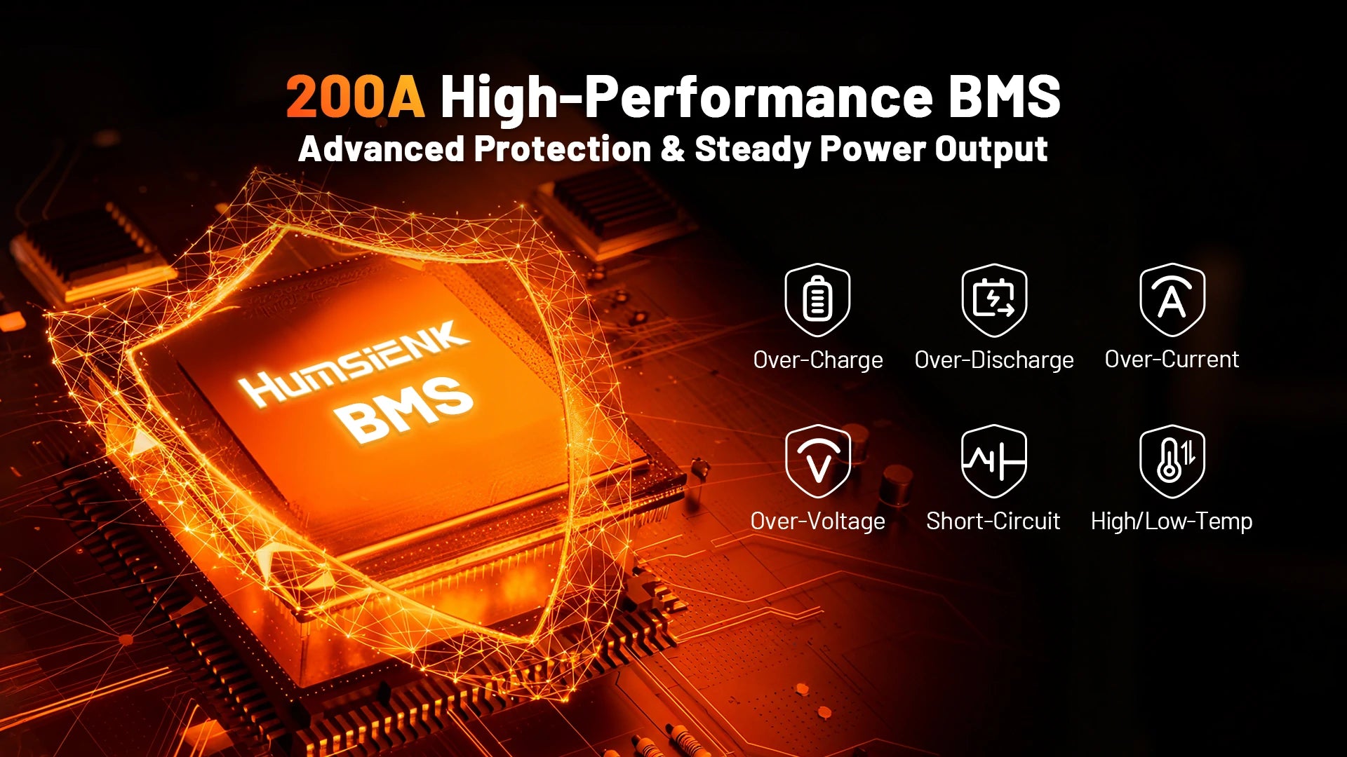 - Smart APP: Humsienk APP supports fast connection, remotely check cell/battery data, control charge/discharge and battery data Diagnosis.
