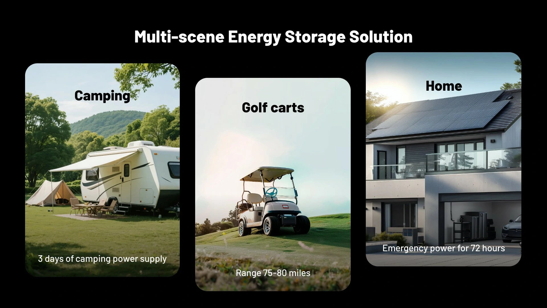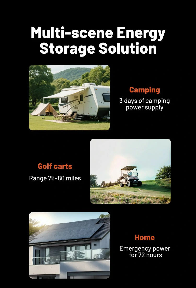 1. Powered by ZEEKR LiFePO4 Blade Cells: 7680Wh high-energy output, range 2x that of traditional lead-acid batteries, suitable for golf carts, motorhomes, and home backup power in multiple scenarios.