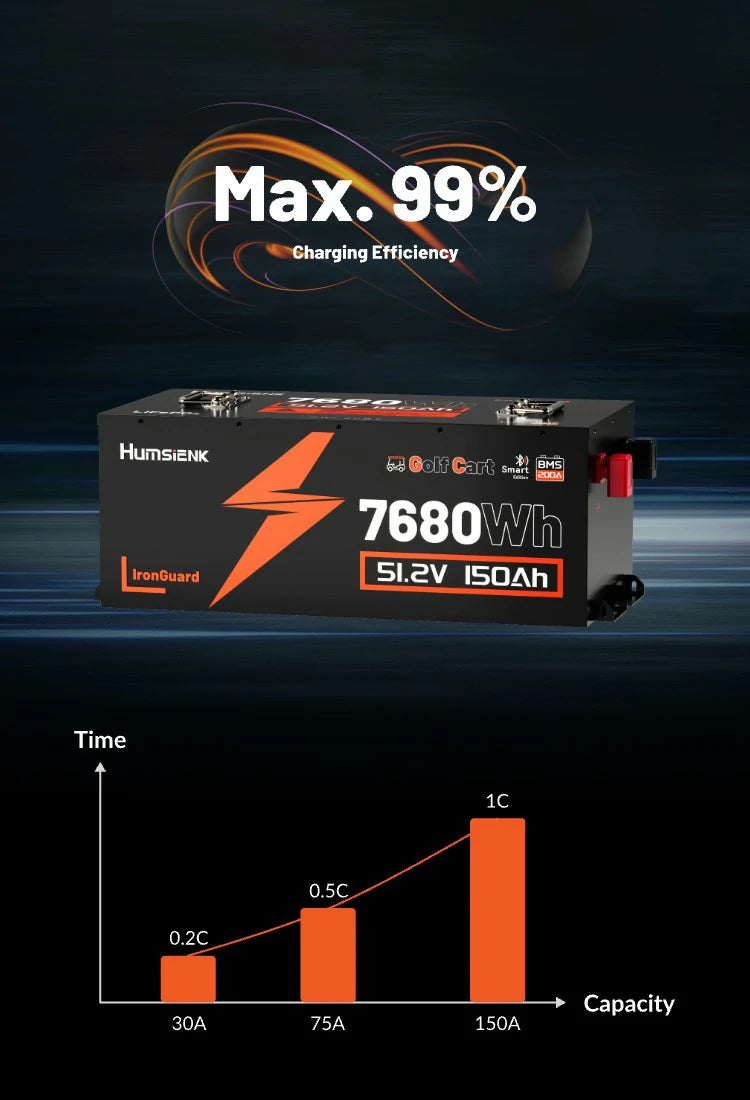 [🎁Xmas Special] 48V(51.2V) 150Ah Golf Cart Bluetooth LiFePO4 Battery with 200A BMS