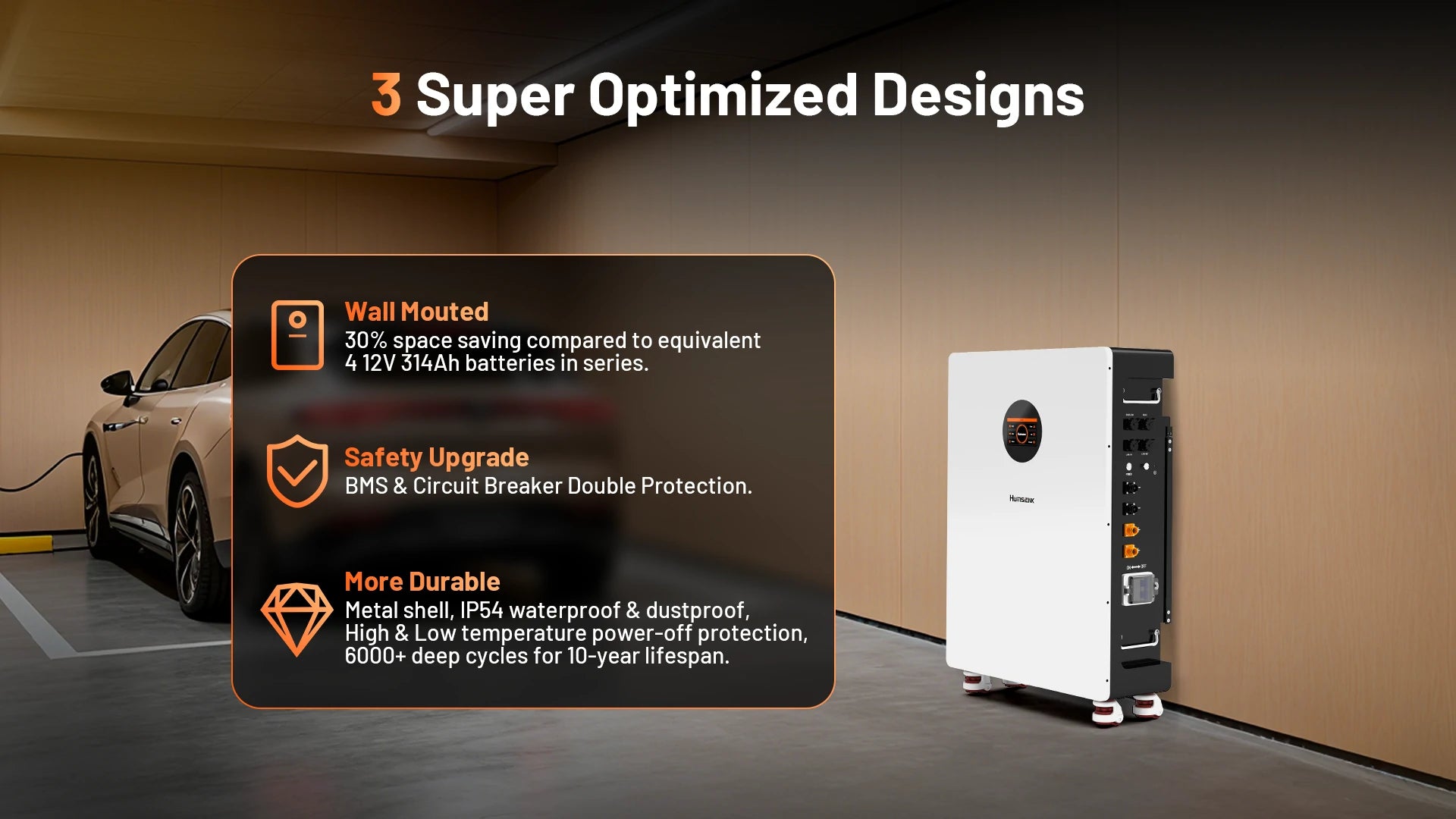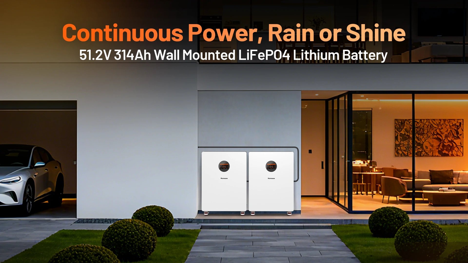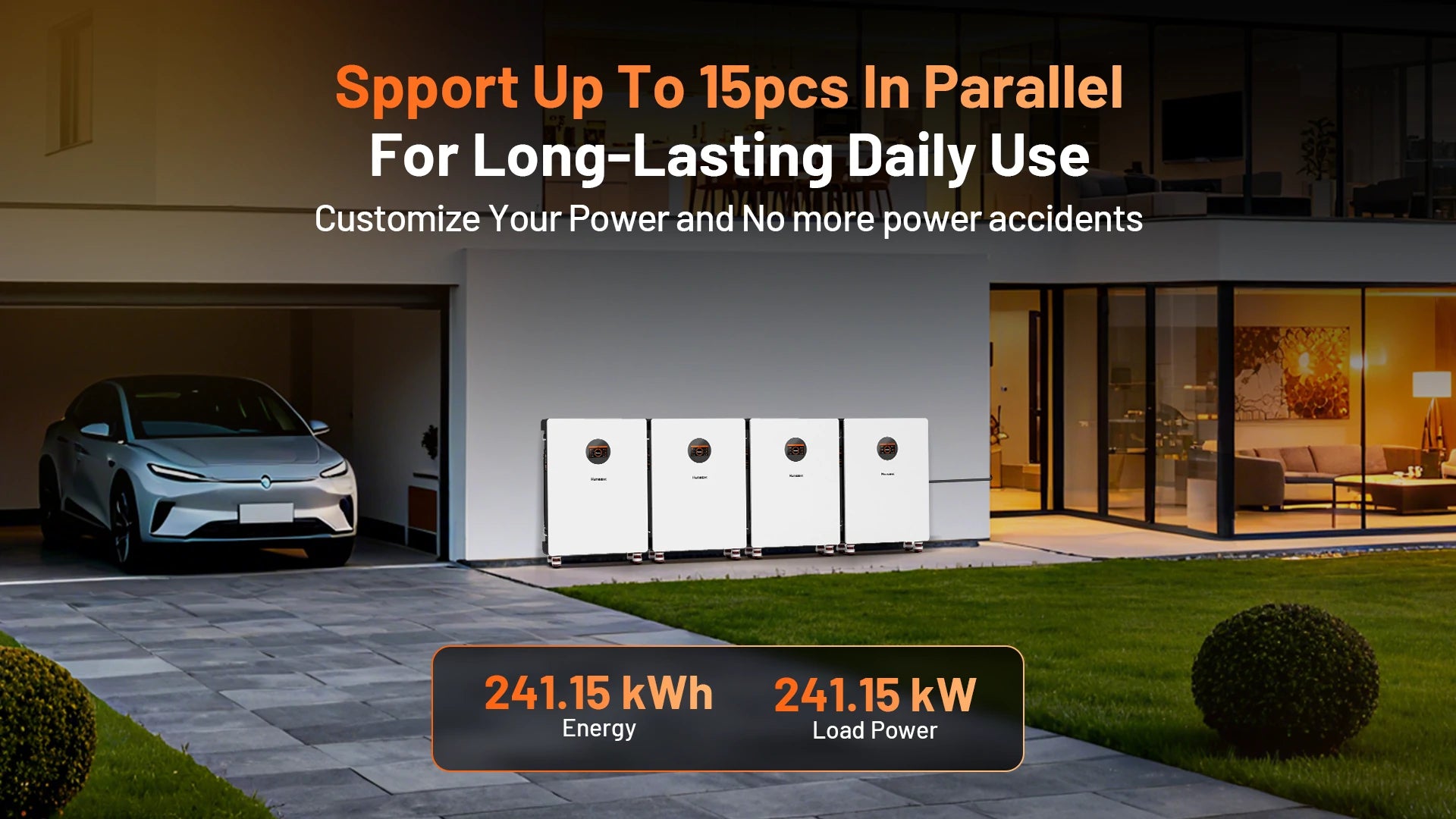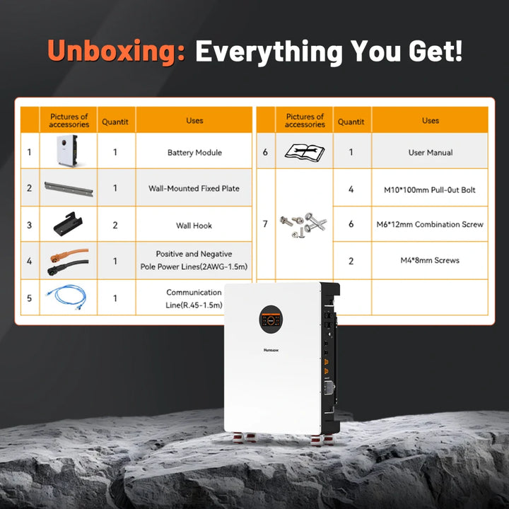 - Wall-Mounted & Easy Installation: Designed for a hassle-free setup. The compact, space-saving design (24.40 x 10.00 x 35.04 in) includes all necessary mounting brackets, screws, and power cables. At only 294 lbs each battery, it's 55% lighter than lead-acid alternatives.