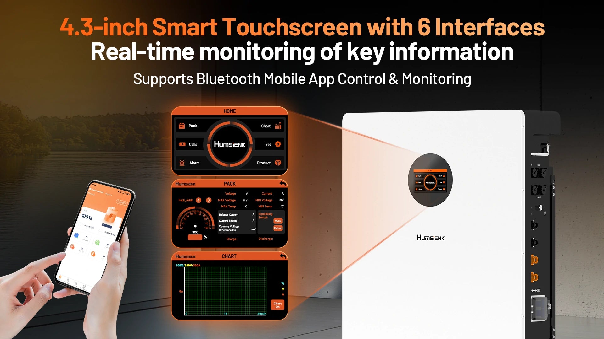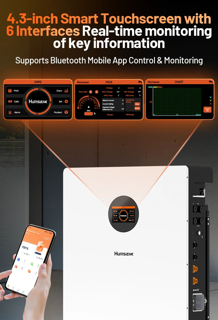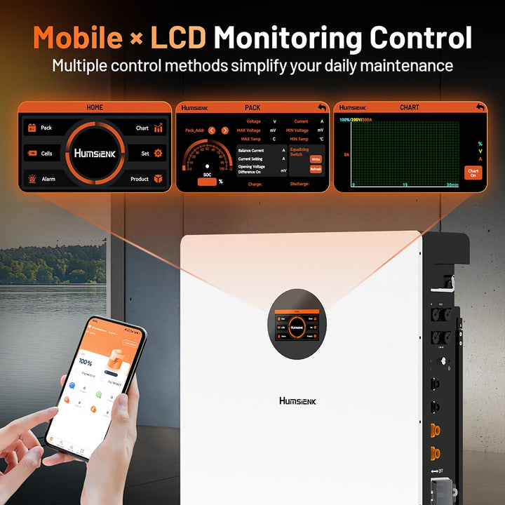 - Smart LCD Touchscreen & Real-Time Mobile APP Control: Gain complete control over your energy storage. The integrated, user-friendly LCD touchscreen clearly displays real-time voltage, current, remaining power (SOC), and system status. For ultimate convenience, seamlessly connect via Bluetooth to the dedicated mobile APP for remote monitoring and management from anywhere, at any time.
