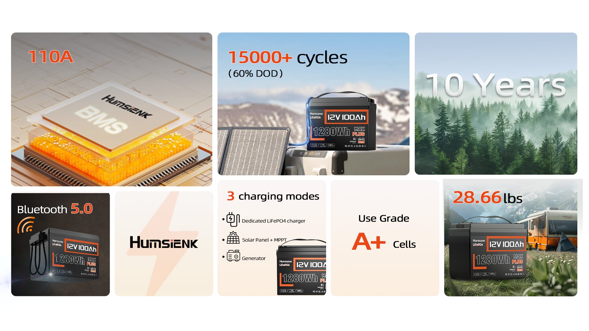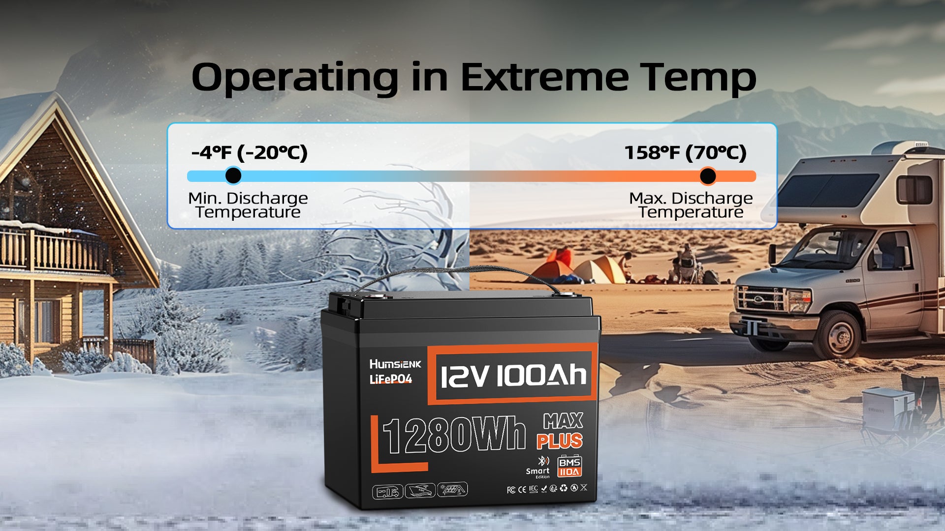 - Upgrade to 110A BMS realizes 100% protection; advanced low-temp cut-off protection.