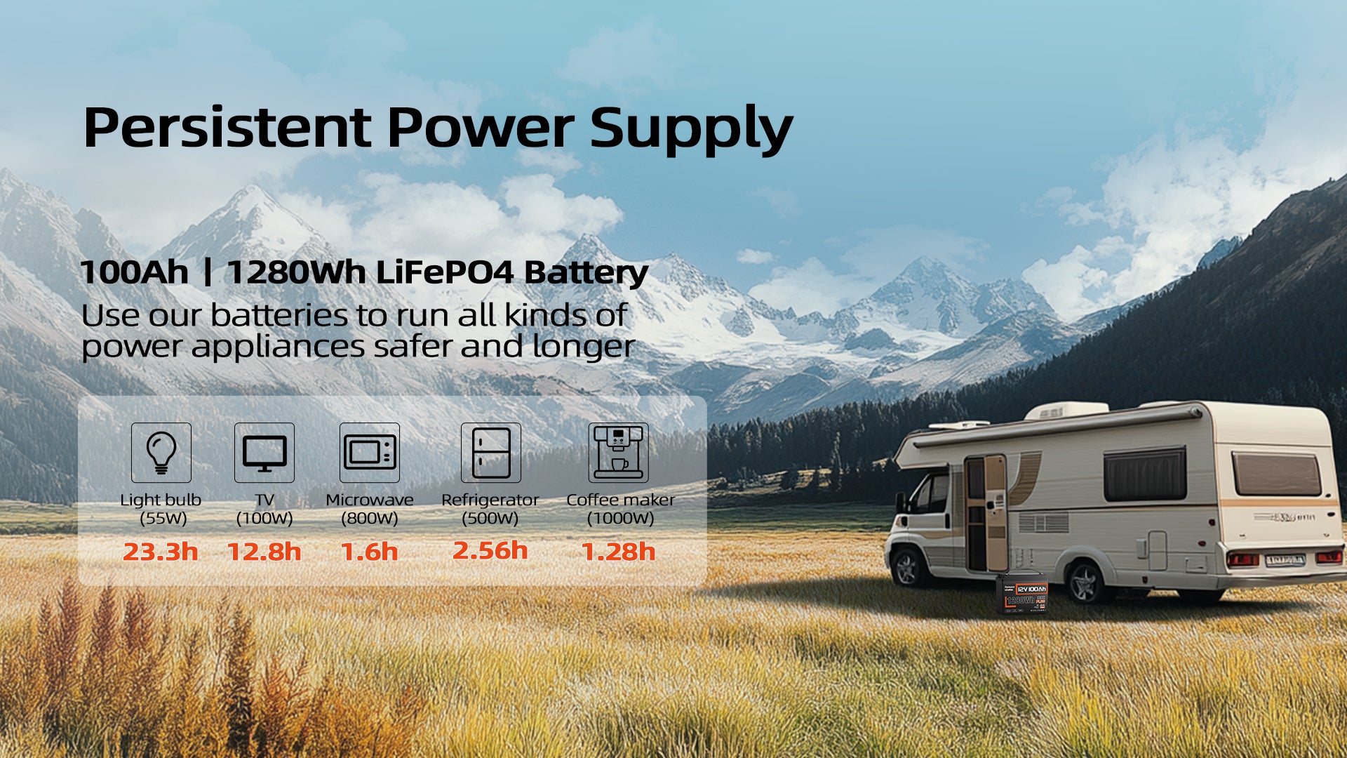 - Enjoy More Energy: 1280Wh energy & 1408W output power, 2X energy than lead-acid batteries.