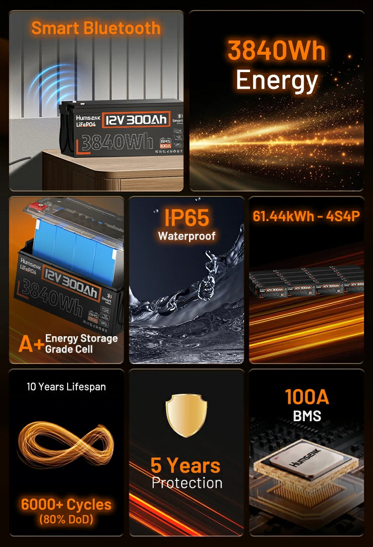 - 🔥 Upgrade to Humsienk’s 12V 300Ah LiFePO4 Battery with Bluetooth Today and Power Your World Without Limits! 🚀